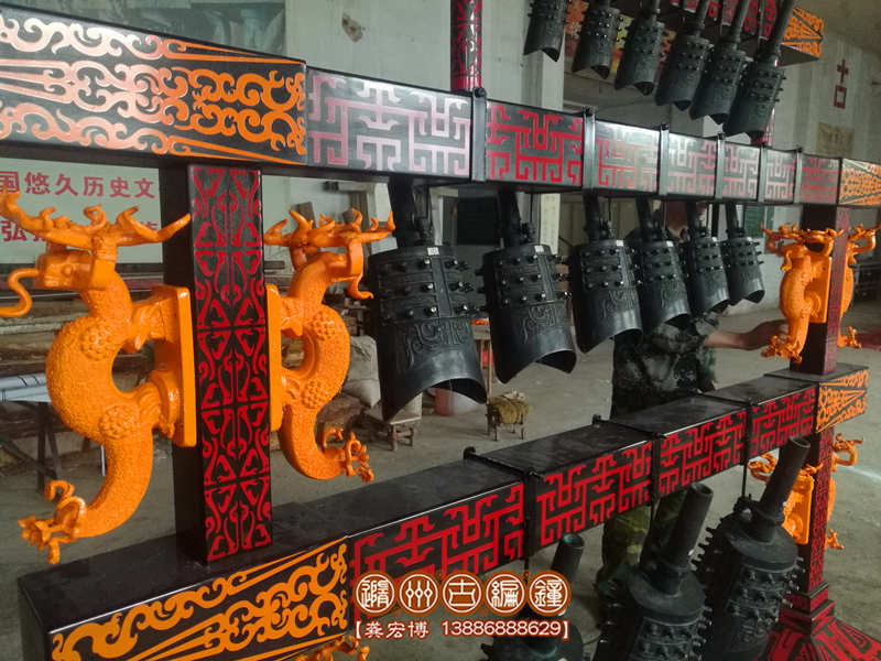 古編鐘公司特色定制編鐘系列,根據客戶要求制作的仿古演奏型編鐘,規(guī)格、紋飾、音階、顏色及造價可都按客戶指定要求進行創(chuàng)作并加工制作,這套編鐘區(qū)別于一般曾侯乙編鐘,滿足了客戶的特殊要求。
