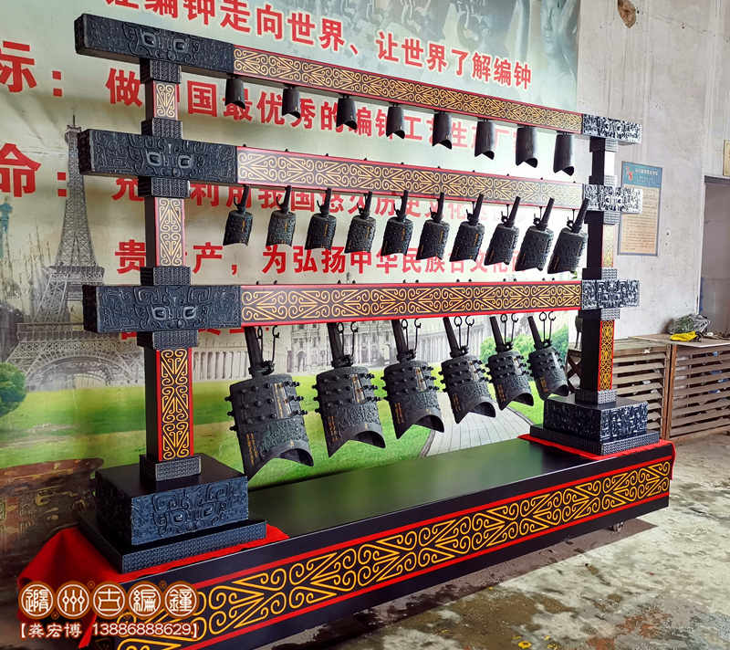 簡介:隨州古編鐘公司按客戶要求定制生產(chǎn)的24件編鐘(南樂歌鐘),編鐘為錫青銅鑄造并按442Hz調(diào)音,分3層懸掛方式排列,音階達(dá)3個(gè)半八度,可以演奏古今中外樂曲,可以和任何樂器搭配演奏。
