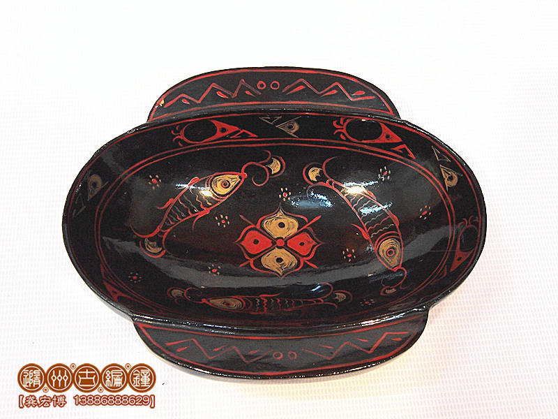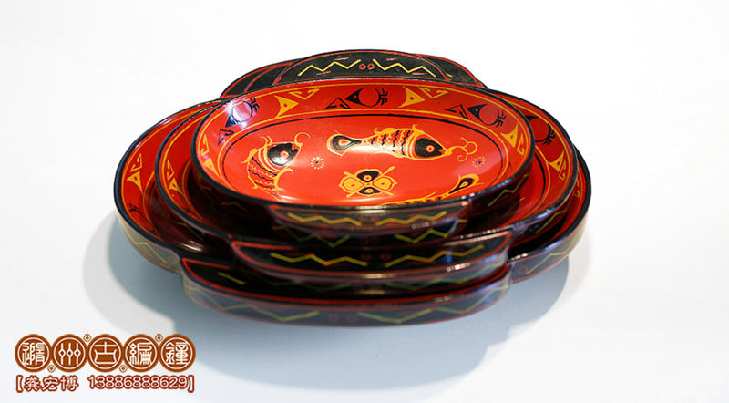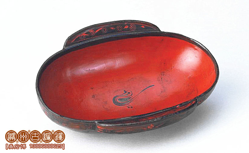 耳杯造型為器口元寶形,小耳,淺腹,平底,往往以盤承托。耳杯有方形和圓形兩種。自戰(zhàn)國以來,一直經久不衰。主要為飲酒器,還與古代“曲水流觴”的活動有關。據(jù)考,古代習俗于三月初,為祓除不詳,在水之上游投入盛滿酒的耳杯,任其漂流而下,杯受阻則取而飲之。所以耳杯的耳大如羽扇,既利于漂浮,又便于提取。