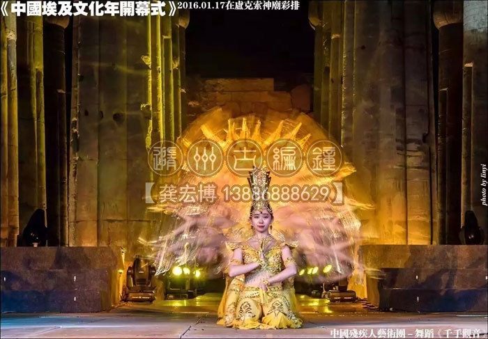 埃及當(dāng)?shù)貢r間2016年1月21日,國家主席習(xí)近平和埃及總統(tǒng)塞西在古老的盧克索神廟廣場共同出席中埃建交60周年慶祝活動暨2016中埃文化年開幕式。湖北省歌舞劇院進(jìn)行編鐘表演禮樂《金石合鳴》。