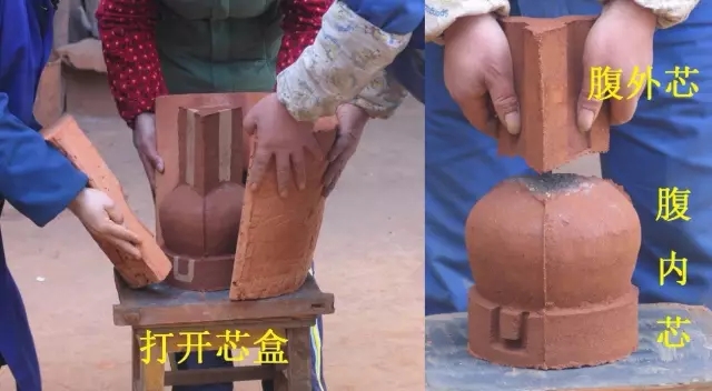 打開外范,去掉耳模,即得兩個完整的泥芯,將范面的泥片去除,這時范和芯之間就會形成型腔。