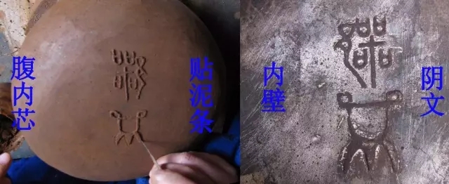泥芯的表面需進(jìn)行修整,如想在器物內(nèi)壁留下銘文,這時候就可以在腹內(nèi)芯上貼泥條了。